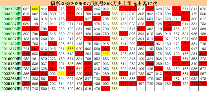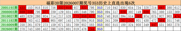 解密:首先,直选353开出之后,10期内开出豹子号0次,2003年-2026年在开出直选353之后,10期内组三累计出现9次,组三在未来第1-5期出现概率为60%,组三在未来5-10期出现的概率为100%。