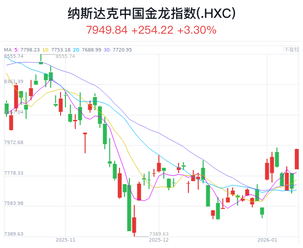 在美上市中概股持续拉升,纳斯达克中国金龙指数现涨3.05%,阿里巴巴涨超7%,小鹏汽车、百度涨超4%,蔚来、网易、哔哩哔哩、贝壳涨超3%,京东、携程涨超2%。美股三大指数小幅下跌,锂电池、存储芯片股表现强势,美国雅保涨超3%,闪迪涨超2%。