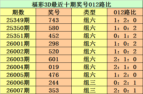 开奖回顾:第2026007期3D奖号为353。形态:组三,奇偶比3:0,大小比1:2,012路比为2:0:1。