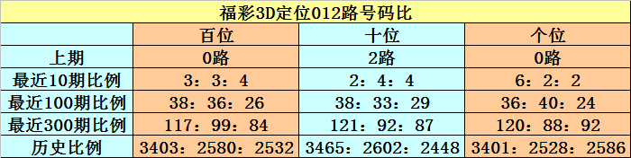 百位推荐:近10期出现3个0路号、3个1路号、4个2路号,2路号火爆。本期注意0路号,关注号码0、3。