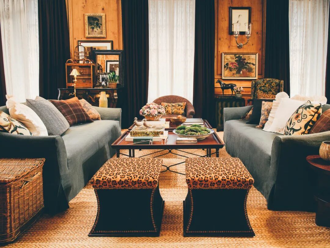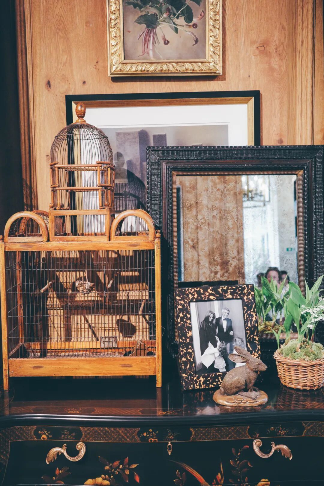 在扑面而来的乡村气息中,可以看到橡木、天鹅绒等材质的柔软舒适,墙上花鸟的写生和桌上的鸟笼生动搭配,旷野生活在这一刻变得具象化了。